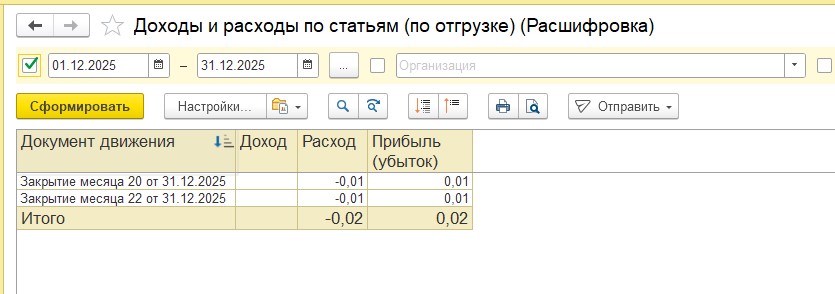 После закрытия месяца в отчёте "Доходы и расходы по статьям (по отгрузке)", появились суммы корректировки себестоимости продаж, необходимо разобраться в причинах. Ниже прикреплены скриншоты.