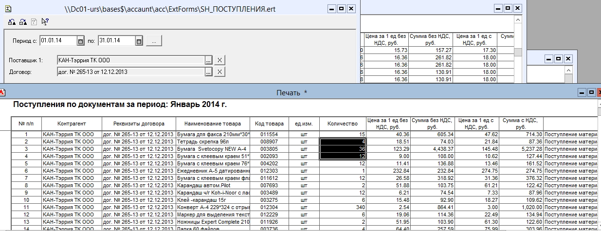 4. Поступления ТМЦ по контрагенты