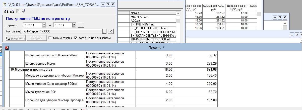 1. Поступление ТМЦ по документам (скрин и сам обработка во вложении)