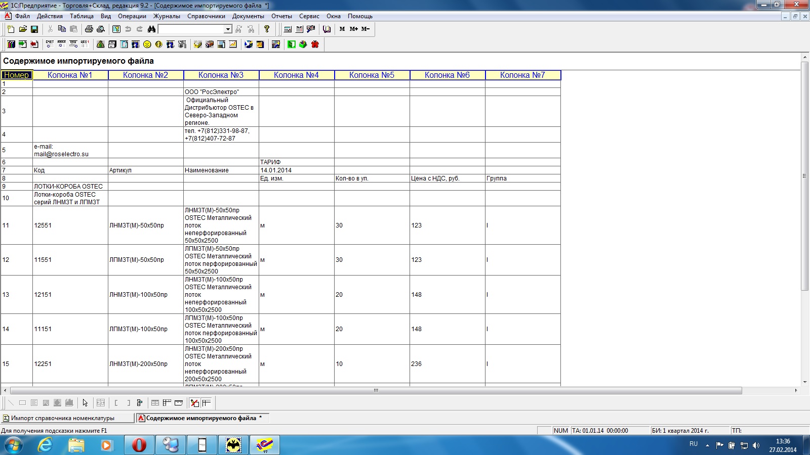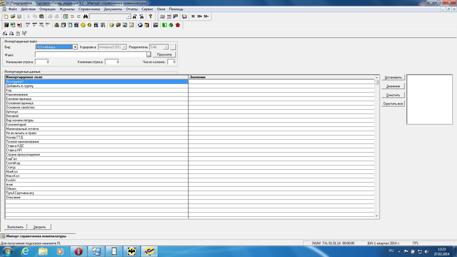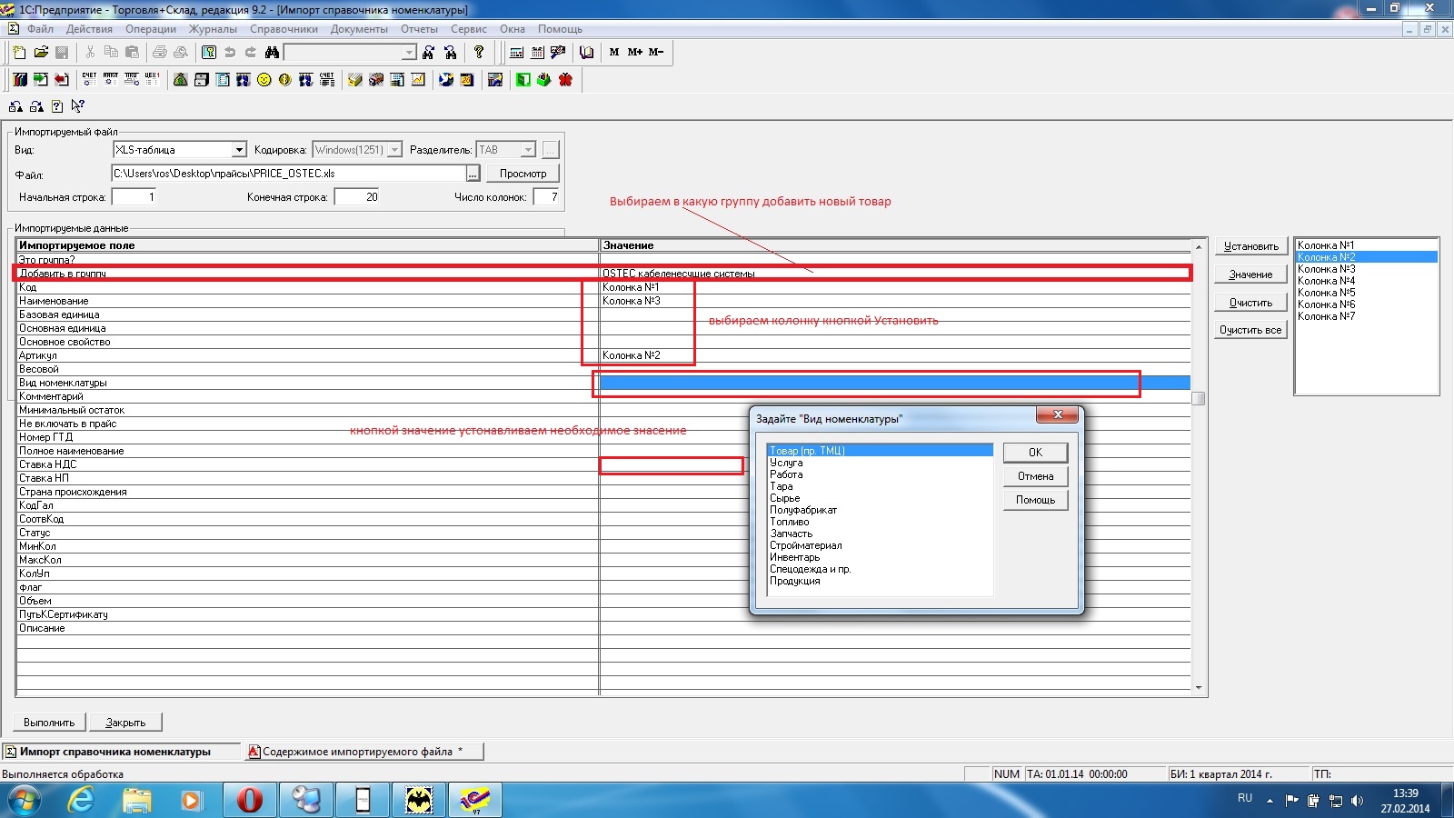 загрузка справочника Номенклатуры и Цены номенклатуры из Excel