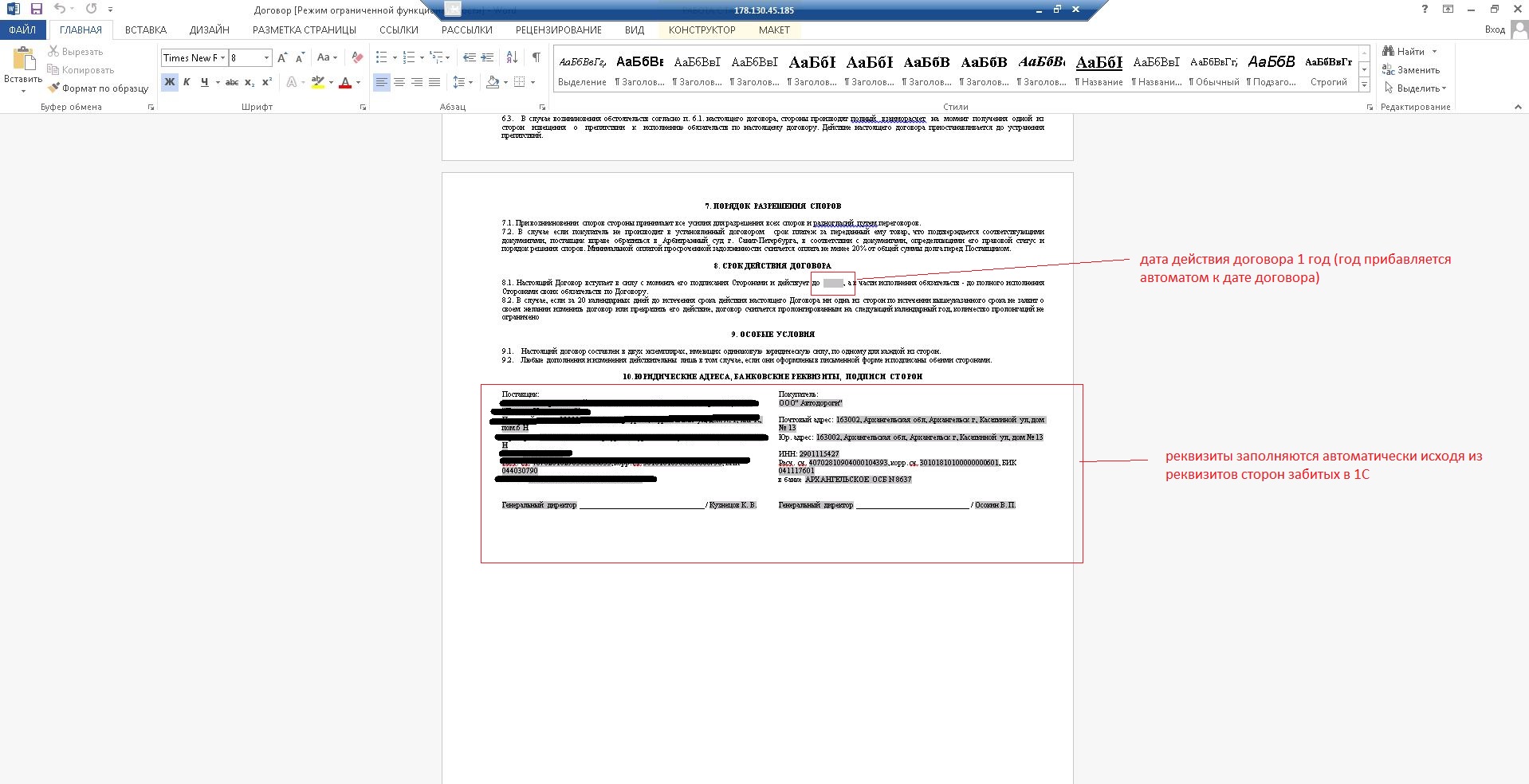 Необходимо найти и изменить текст договора в 1С УТ8.2 на новый (согласно предоставленному файлу world), с сохранением автозаполнения реквизитов сторон и пр. (см. скриншоты)