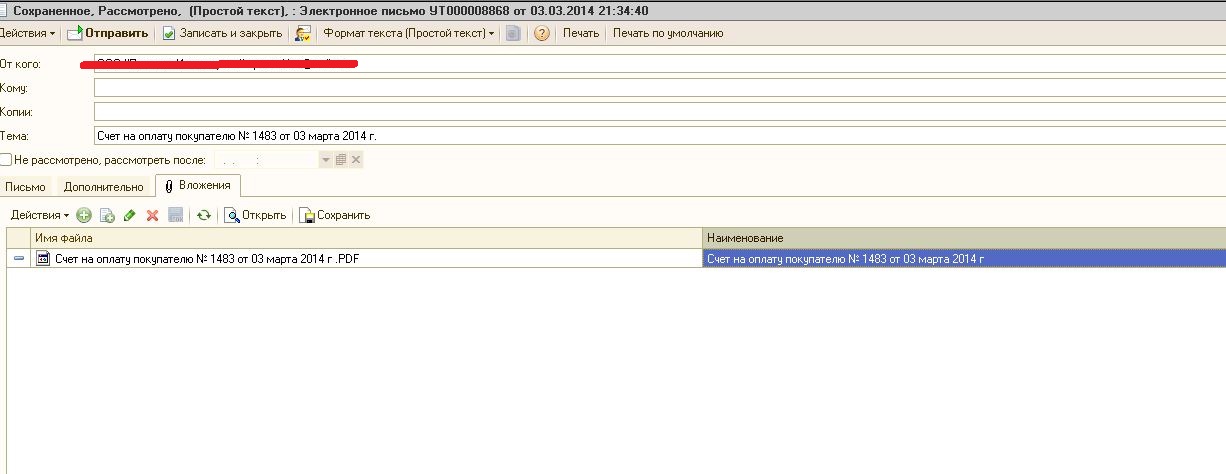 Настроить отправку документов из 1С УТ 8.2 через Outlool 2013