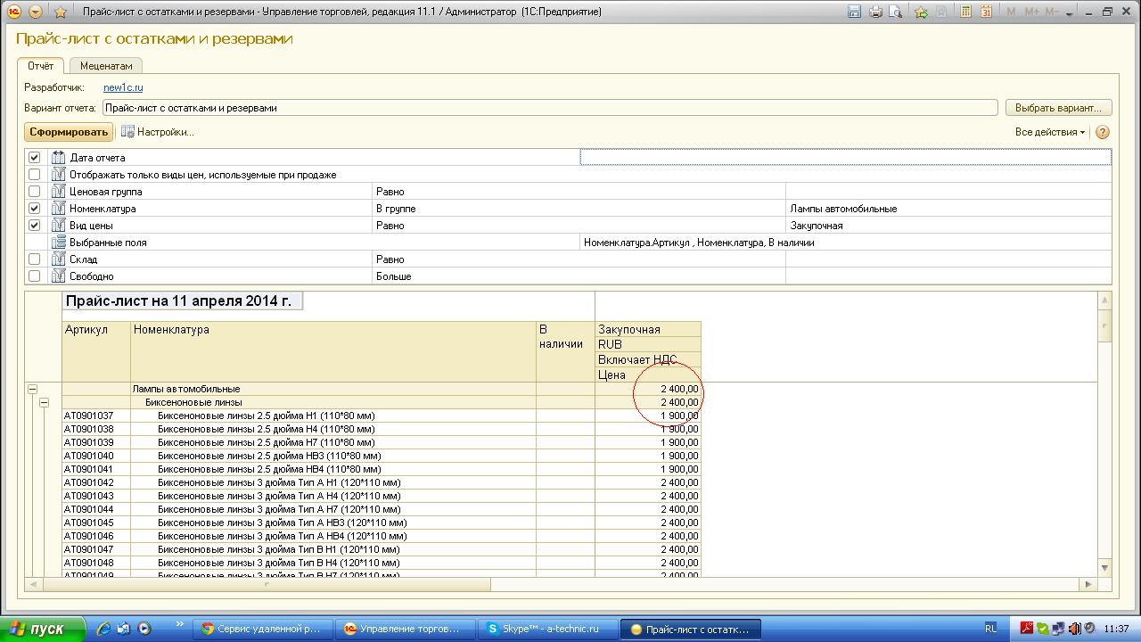 В списке товаров с иерархией напротив имен папок отображается максимальная цена товаров в данной папке.