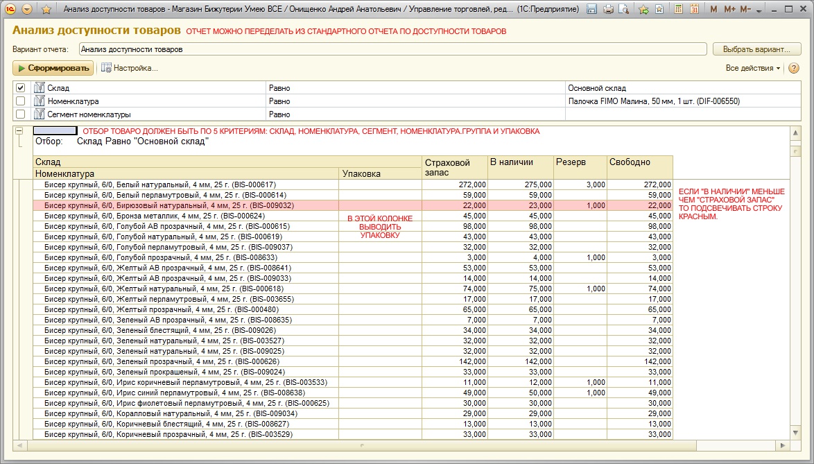 4. Создать отчет, который будет показывать товары с превышенным страховым запасом.