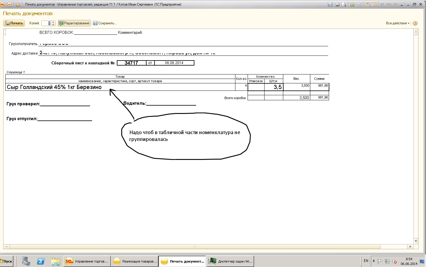Имеется изменённая ВПФ Торг-12 для документа Реализация товаров и услуг