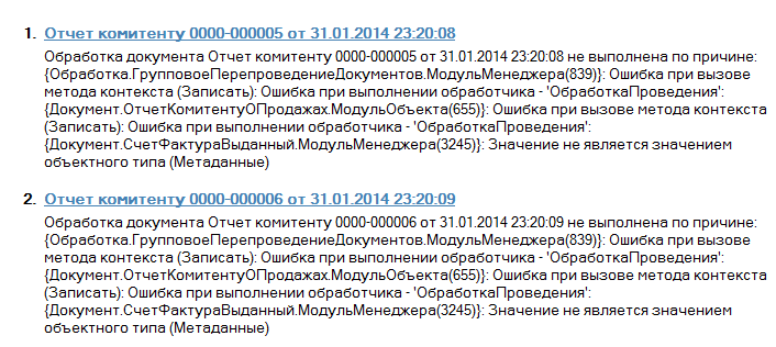 При закрытие месяца получаются такие ошибки (см. приложение). Причину установить удалось. Номера счетов фактур выданных правились вручную изначально, на то были причины. Теперь если с "отчета комиссионера" снять проведение, то одна счет фактура помечается на удаление и на её место создается новая. Нужно обойти этот механизм или предложить решение в данной ситуации. Конфигурация типовая.